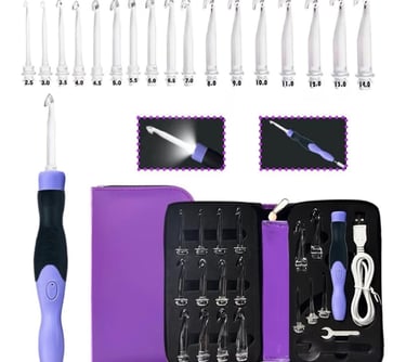 This hook comes eith many different sizes so you can use it for almost any project! It lights up so you can even crochet in the dark. I love to use while watching tv with the lights off or when i’m crocheting in the car and it’S dark out. Use this link to get your own! https://amzn.to/4q04HcR